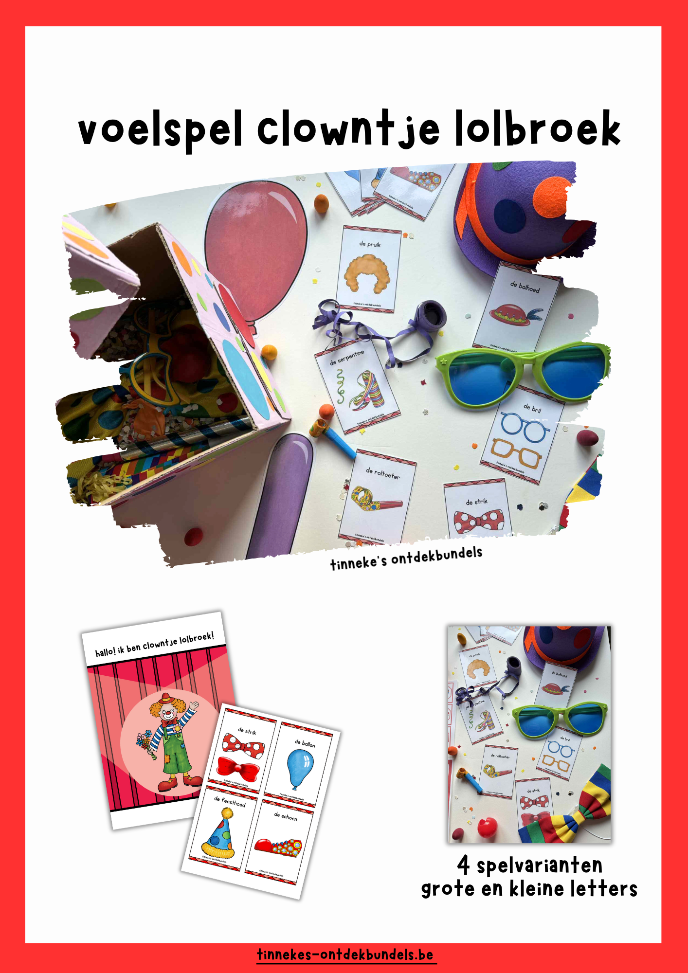 Samen met Clowntje Lolbroek spelen ze een spannend voelspel, ik gebruikte hiervoor een confettidoos. Alle tips en uitleg vind je in de pdf hierboven. Veel plezier!