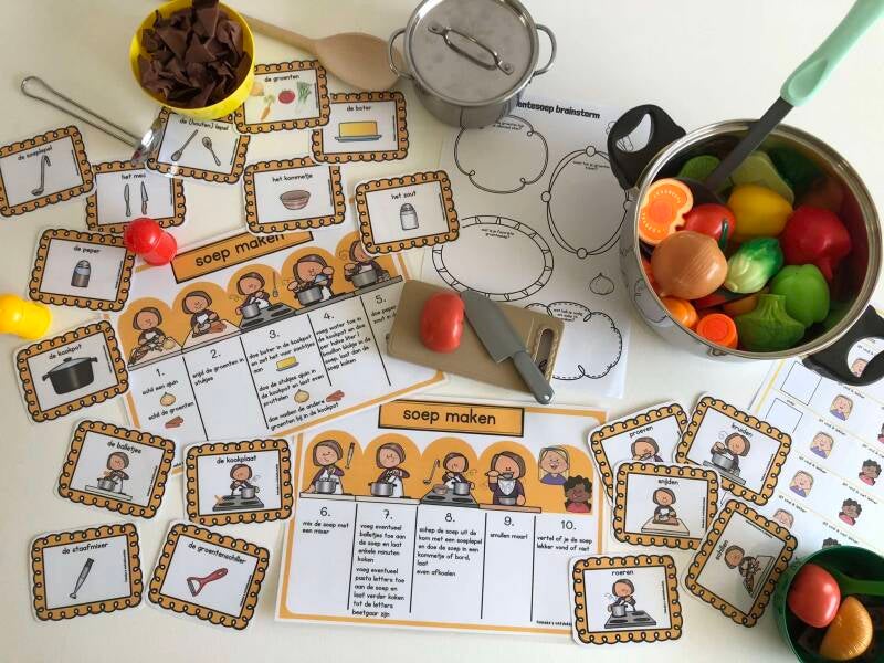 Tover je klas om tot een échte groentewinkel met deze speelse hoekverrijking! Van prijskaartjes tot winkelrollen en woordkaarten: alles is voorzien om taal, rekenen én rollenspel te stimuleren. Laat je kleuters verkopen, wegen en rekenen alsof ze echte marktkramers zijn!